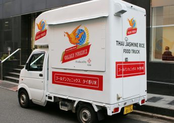 当社はココロータス(株式会社Cocorotus)とのコラボレーション企画として今年の2月より「ゴールデンフェニックス」デザインのキッチンカーでタイ香り米を使用したエスニック料理の販売を行っていますが、タイへの恩返しの一環として、同キッチンカーで販売するお弁当1つにつき5円を、当社とココロータス共同で、タイの環境保護団体「スープ・ナーカサティアン財団」へ寄付します。(2021年5月10日~8月末予定)