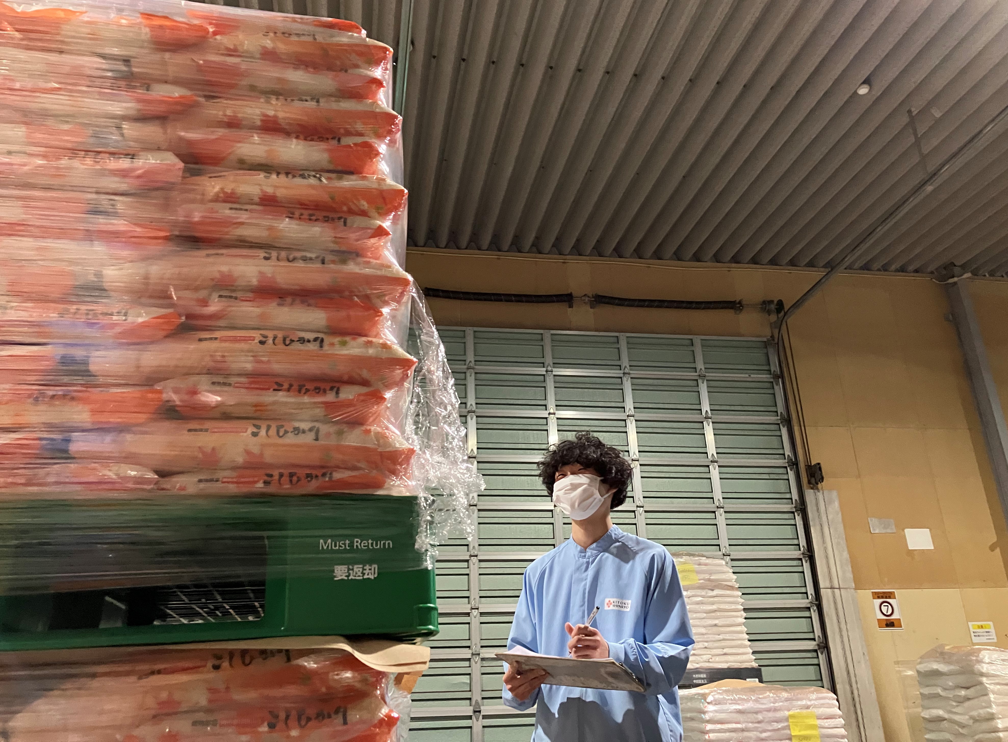 仕分け作業では、大手量販店向けに納品される製品をパレットの上に並べていく作業などを行っています。