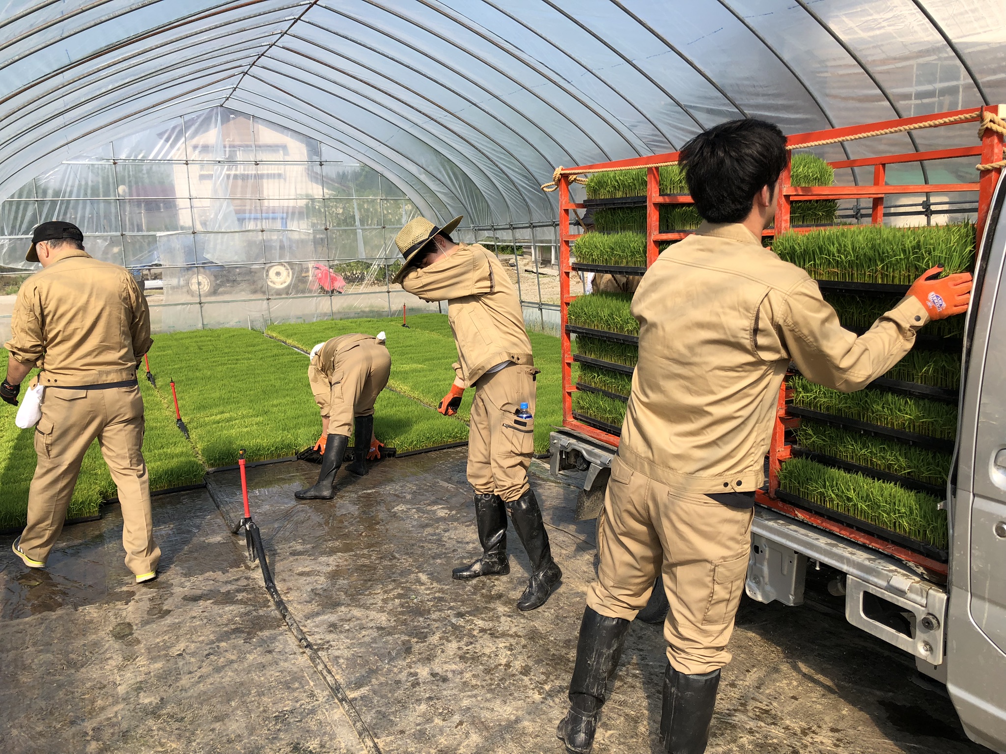 新入社員が山形県最上郡(株式会社 山形うー米ファーム様)に赴き、稲作を実際に行う研修の機会を設けています。